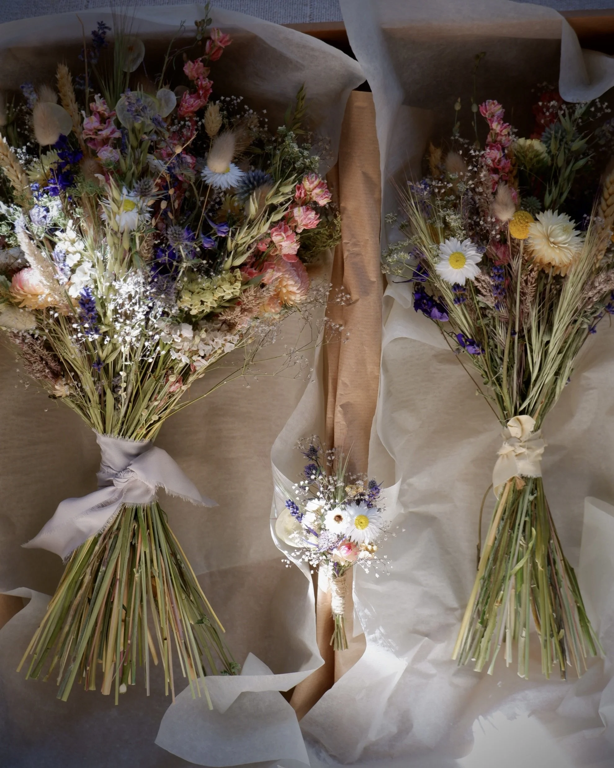 My speciality is a combination of everlasting flowers and fresh event flowers. Everlasting dried pieces can be delivered to anywhere in the UK, and I create for larger weddings only in the West Sussex area.