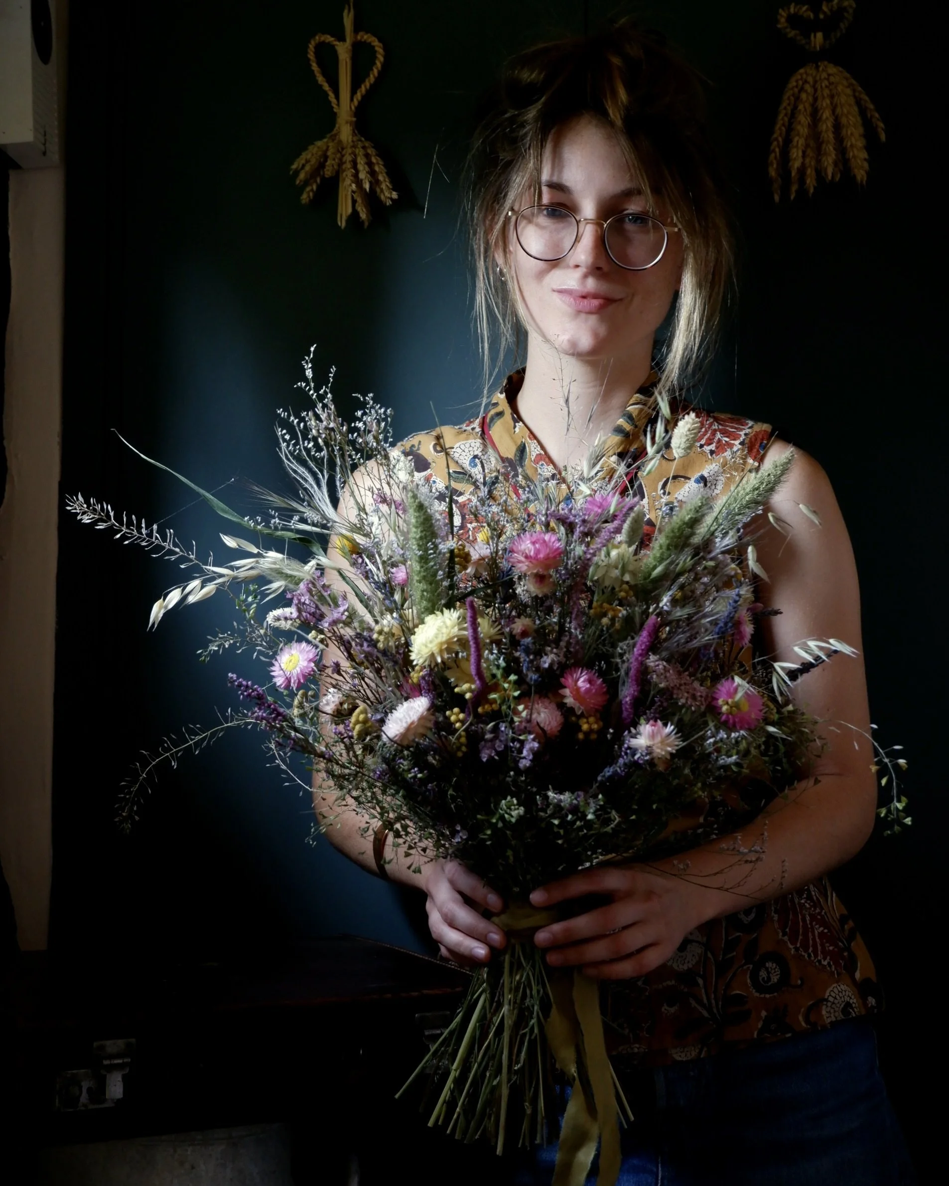 She creates curious beauty using homegrown and traditionally preserved everlasting flowers with her carefully cultivated knowledge in dried flower floristry and growing.